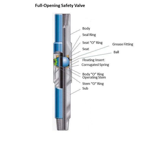 A Full Opening Safety Valve (FOSV), also known as a TIW valve, is a crucial, manual, ball-type valve used in oil and gas drilling to stop hazardous fluid flow up the drill string, ensuring well control by allowing quick insertion (stabbing) against high pressure when needed, featuring a large internal bore for minimal flow restriction and pressure resistance from both directions.